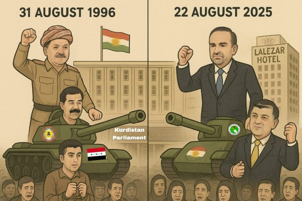 These incidents recall a familiar pattern: fratricidal conflicts, betrayals, and the use of military force against political rivals—echoing the tragic events of August 31, 1996, when the KDP invited Saddam Hussein’s army into Erbil to defeat the PUK. The recent mobilization of tanks and heavy weaponry on August 22, 2025, occurring just nine days before that dark anniversary, suggests history may indeed be repeating itself.
